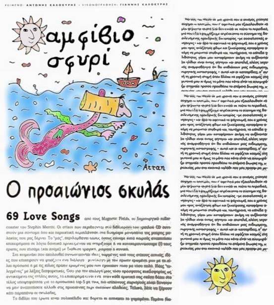 στήλη με τίτλο: «Αμφίβιο σφυρί». Το άρθρο αναφέρεται σε 69 Love Songs από τους Magnetic